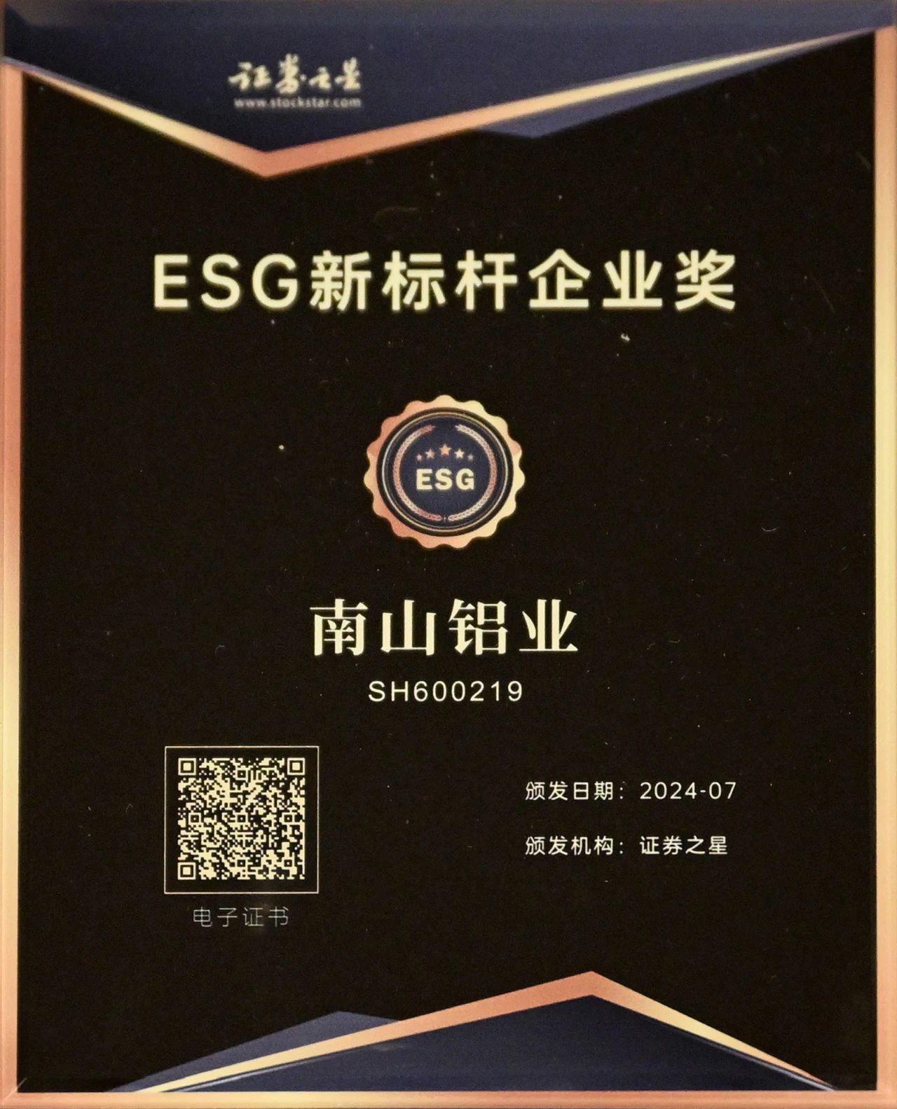 在近日舉行的“新視野新未來”2024證券之星“ESG”(環境、社會和管治)研討會上,南山鋁業榮獲“證券之星ESG新標桿企業獎”。