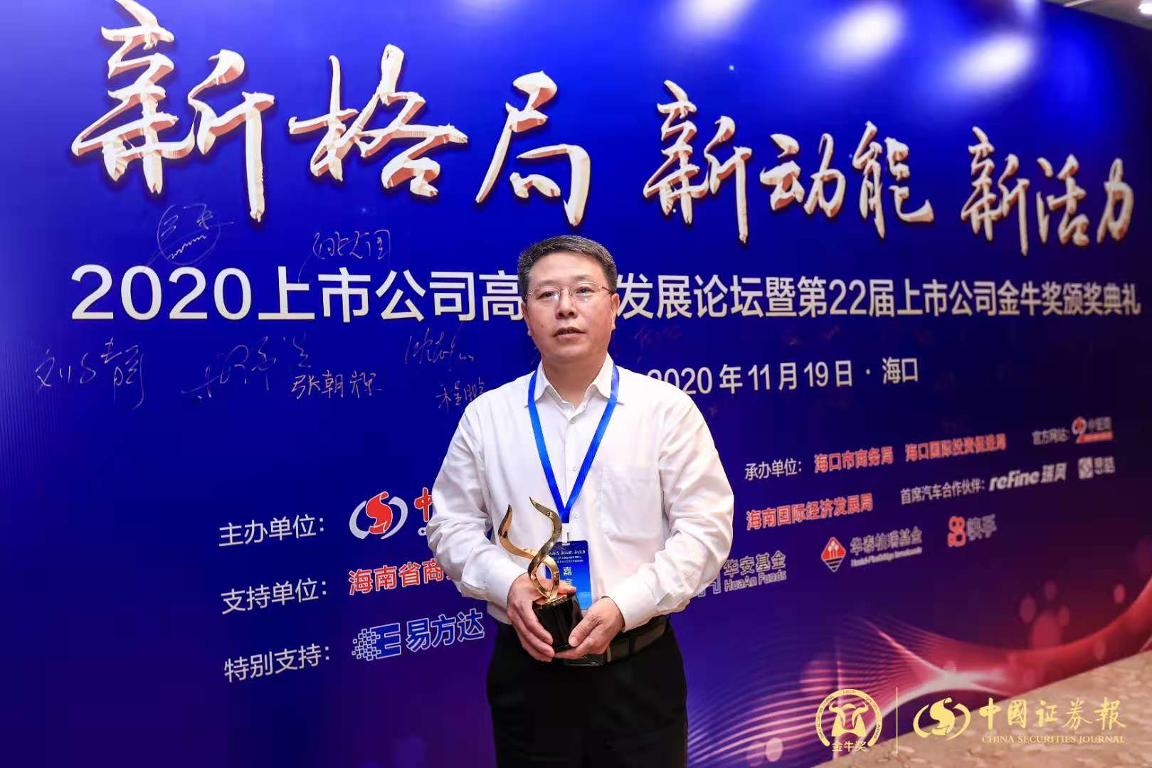 11月19日,由中國證券報、海口市人民政府聯合主辦的“2020上市公司高質量發展論壇暨第22屆上市公司金牛獎頒獎典禮”在海口舉行,金牛獎系列五大獎項揭曉。南山鋁業榮獲“金牛社會責任獎”,南山鋁業總經理呂正風榮獲“金牛企業領袖獎”。